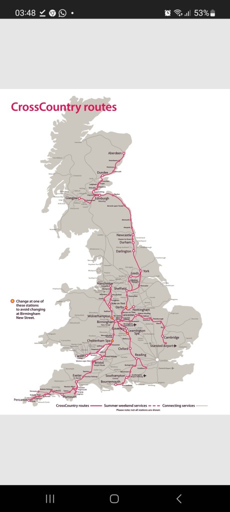 For example, CrossCountry trains uses mostly diesel Voyagers for its services as many routes are non-electrified, and as can be seen from above map, there are several ‘loops’ in present services around Leeds/Doncaster, Crewe/Congleton, Coventry and Weston-Super-Mare. As far as I am aware, these units have not used the route before so would need to be cleared for it.