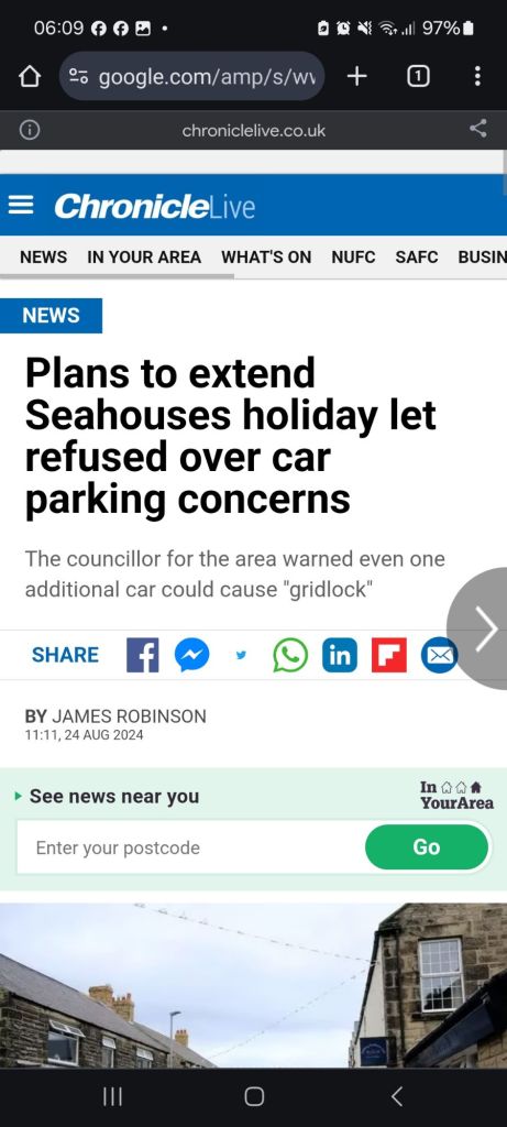 Take for example Seahouses, a beautiful village on the Northumberland Coast, but one that is ‘one car away from gridlock’ by this recent article in the Chronicle.