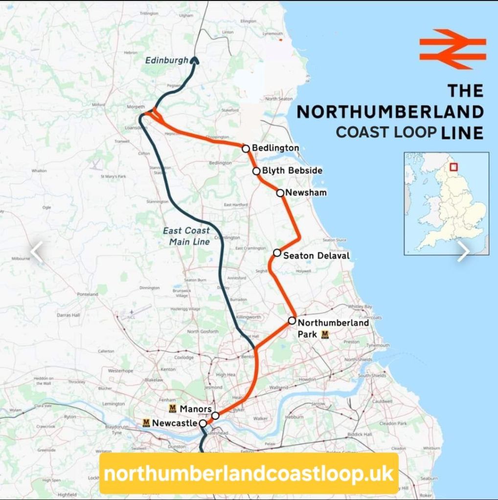 In quick summary, this route would simply share the Northumberland Line between Newcastle and Bedlington, with trains to some/all stations along it, then use the existing Hepscott Line to connect back to the East Coast Main Line (ECML), ideally headed northwards, to provide a link between SE Northumberland, North Northumberland, and Scotland. It would use platforms either already in place (i.e. those on the ECML), or those being built as part of the Northumberland Line project, all it requires is regular passenger trains over the ~5 miles of line between Morpeth North Junction and Bedlington.