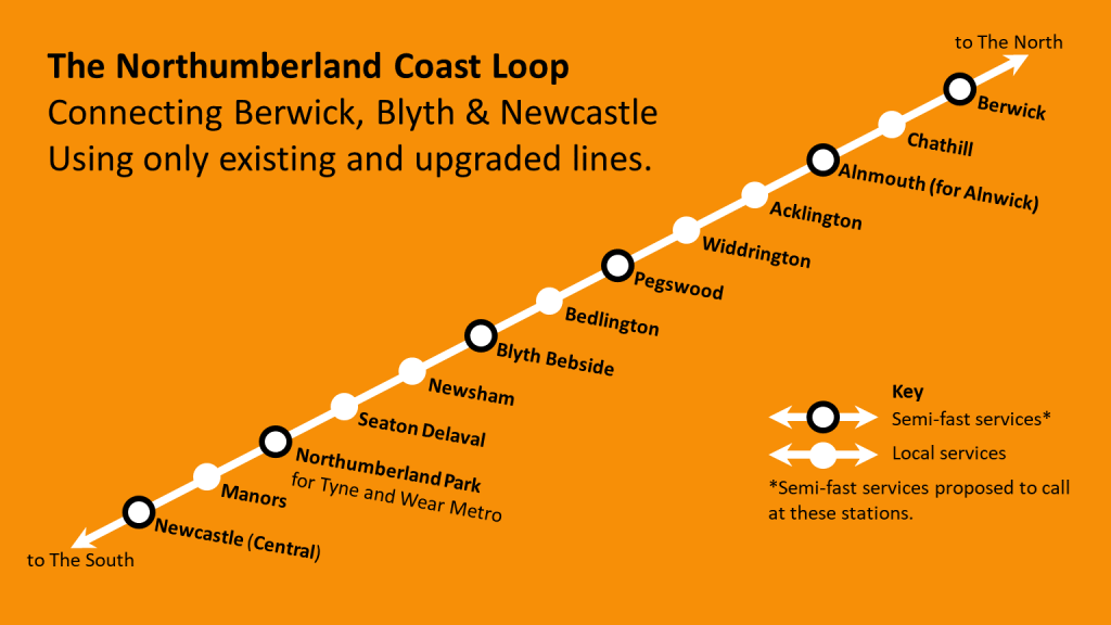 Adding this fourth option of Northumberland Coast Loop services would fix the missing link between SE Northumberland and North Northumberland/Scotland.